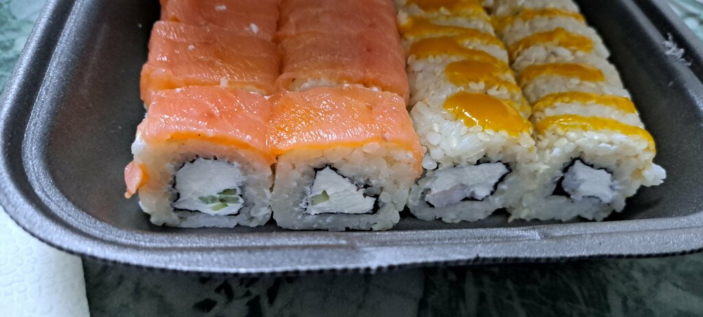Нам было вкусно, спасибо)) заказывали через СберМаркет, некоторые роллы не соответствовали фотографиям, немного размазались шапочки при доставке , хотела отметить особо понравившиеся , но по фото так и не поняли какие это были) сами роллы были свежайшими , теплыми, для этого их и упаковывают в фольгу, это про комментарий ниже. Съели быстро, сфоткать не успела😁