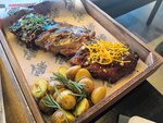 Свиные ребра, картофель печеный, соус на выбор