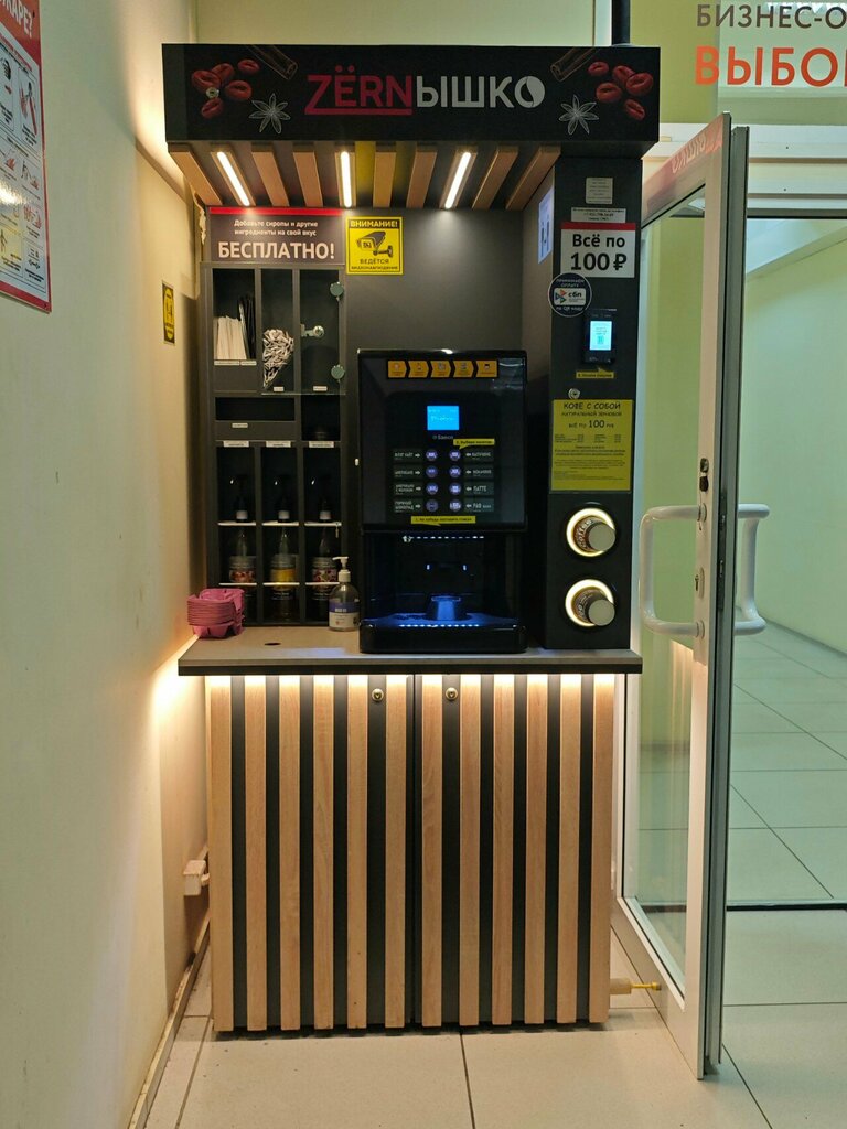 Отличный кофе. 350 мл всего за 100 руб. Готовишь сам. Можно добавить сиропы, взять крышку, трубочку. Стоит в Бизнес Центре "Сетка", место тихое, не людное. Никто "не дышит в спину", не толкается. Всё понравилось. Спасибо!