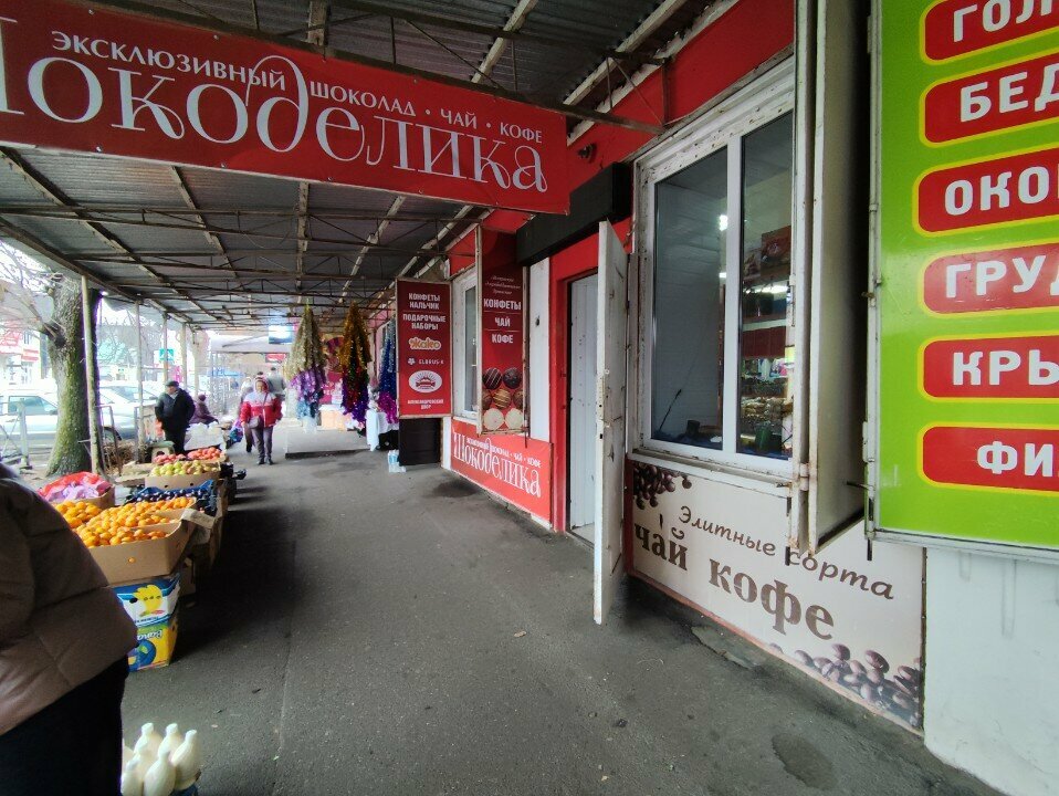 Уже четыре года приезжая на курорт закупаемся только в этом магазине. Он расположен на центральном (он же единственный) рынке, на "аллее", где торгуют фруктами и овощами. Цены на 100-150 рублей ниже, чем в курортной зоне. Очень большой выбор конфет как производства Нальчика, так и остальных производителей. Но главная "изюминка" это продавец. Очень дружелюбная и общительная, может рассказать про каждую конфетку, печенюшку и прочую сладость. Заплатить можно и наличными и по карте.