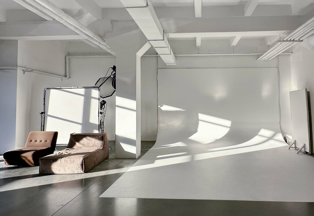 A clean studio with various rooms, there is always the necessary equipment/appliances + additional light sources. A large dressing room with 4 tables, good light and a steaming area for clothes, sofas in the entrance group and clean slippers. Administrators bring or transfer the necessary equipment, and they can also help install a light scheme, if it is not completely clear, there is a shoe tape (gluing), ample parking, delicious tea, scissors, etc.