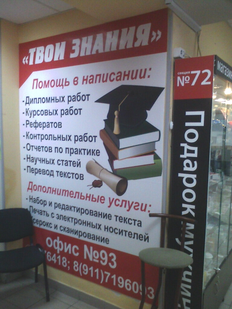 Уже не в первый раз обращаюсь за помощью в " Твои знания".Всегда всё чётко. И десять лет назад и сейчас. Пришлось обратиться, уже по вопросам дочери. Получили квалифицированную помощь, всё по срокам и по качеству работы более, чем устроило.Цены адекватные. Всегда на связи. Большое спасибо!