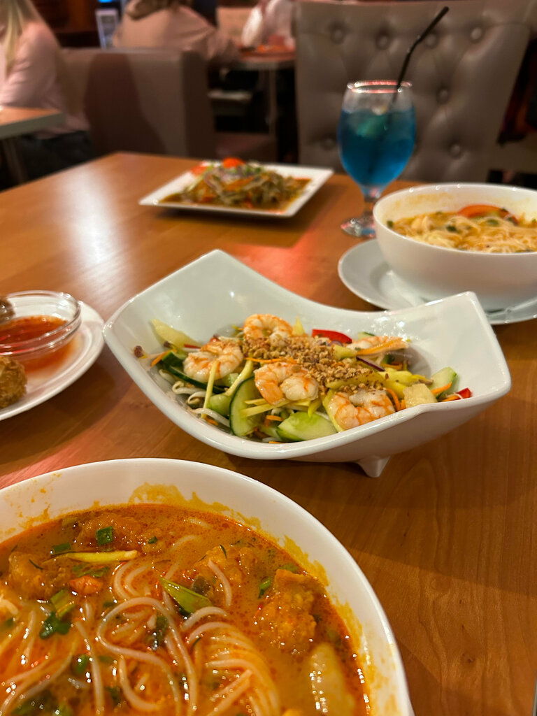Хорошее расположение в парке. Персонал отзывчивый. Традиционная вьетнамская кухня. Брали: Том Ям - большая порция, хороший бульон, но максимально бедноватое наполнение с обычными шампиньонами, не увидел кафир лайм, совсем немного морепродуктов, рис вкусный - оценка 4 из 5 Не помню как называется вок с курицей и овощами, брали со стеклянной лапшой - очень вкусно 5 из 5 Бань Бао - 5 из 5 без нареканий Цитрусовый лимонад - не приторный, освежающий, особенно в жару - 5 из 5 Отлично!