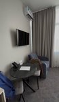 Отдыхали в сентябре 6 дней в этом отеле!!! Могу сказать очень комфортно!!! Можно отметить плюсом это его расположение те кто хочет путешествовать самостоятельно так как рядом автостанция и жд станция!!! Рядом море хороший пляж в двух минутах ходьбы!!! В отеле на рецепшен можно взять полотенца для пляжа зонтики дождивики!!! Приятный персонал общительный, попросили показать как включить телевизор показали рассказали, попросили еще одну подушка дали без проблем!! Отдельного внимания заслуживает постельное белье, беленькое отглаженное вкусно пахнет !!! Сам отель расположен в торговом центре но у отеля свой вход нас это не смущало! Номер достаточно комфортный все новенькое! Есть мини кухня микроволновка можно что-то приготовить если есть желание! Каждый день производили уборку в номере и замена полотенец это тоже плюс! В нижу расположена кофейня где можно выпить кружечку вкусного напитка на свой вкус! В округе много кафе и ресторанов! Для себя минусов не обнаружили но можно приделаться ко всему и к мелочам !!