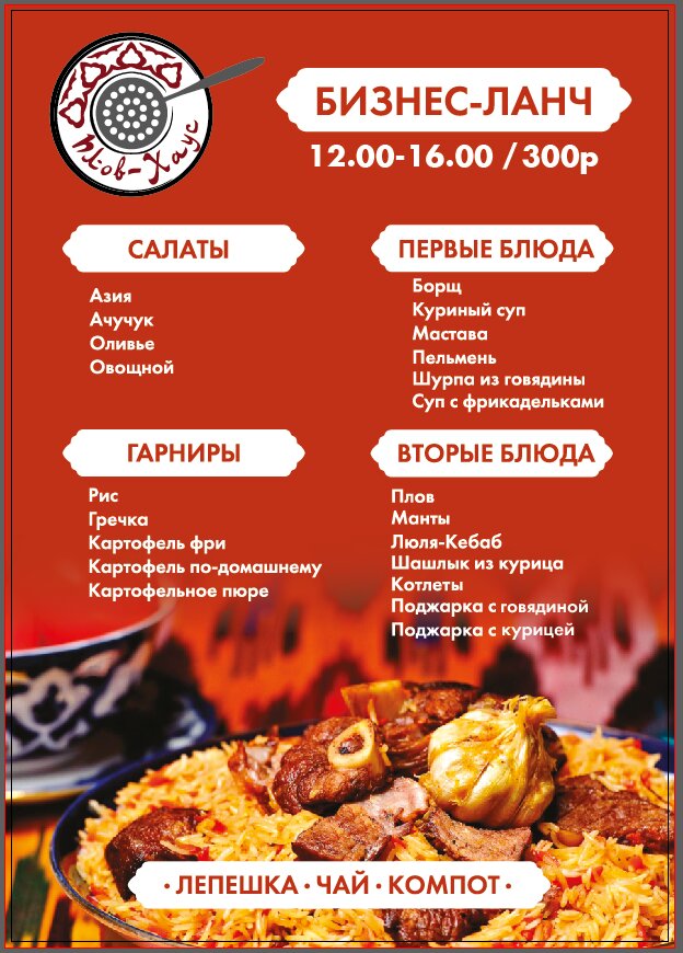 Business lunch price:340 ₽