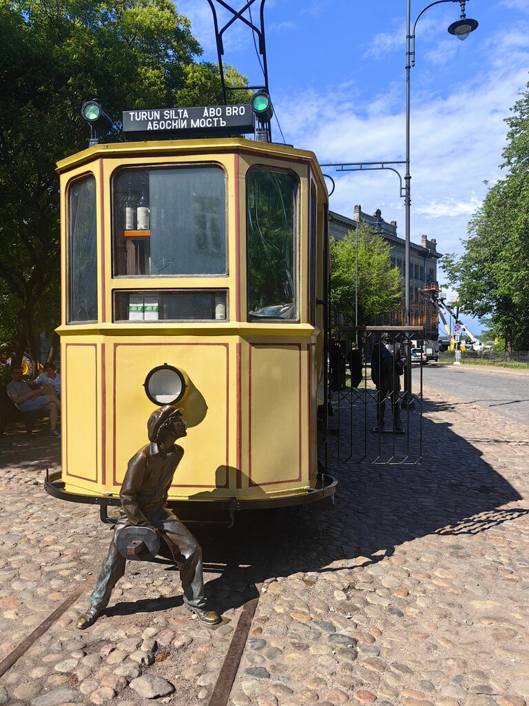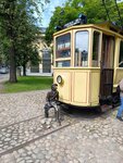 Скульптура относится непосредственно к трамваю, выглядит очень реалистично, всё фоткаются с ним.