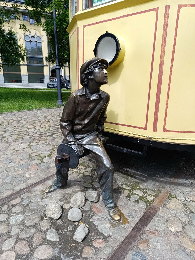 Genre sculpture Мальчик у трамвая, Vyborg, photo
