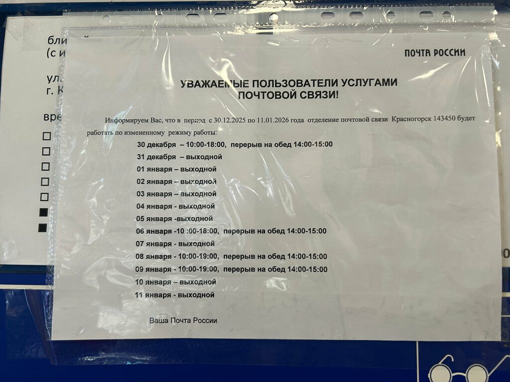Otdeleniye pochtovoy svyazi Krasnogorsk 143443
