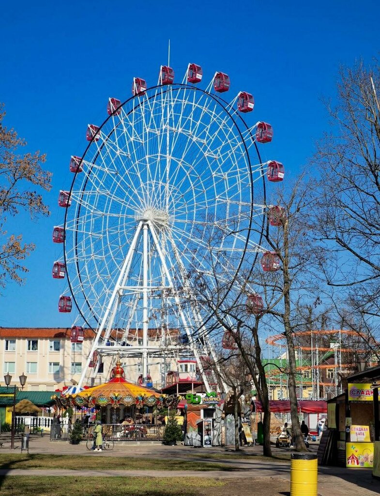 A wonderful place to relax with your family. The park is located in the city center. Admission is free. There are a lot of food outlets, coffee shops, rental. There are enough attractions for children and adults. I especially liked the Ferris wheel, especially at night - when the wheel lights turn on. The park is quite large, green, clean and shady, with lots of flower beds and a fountain. I recommend it to everyone for a relaxing holiday!!!!!