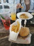 Когда заплатил 1500 р за жидкий сладкий бургер и размазанный по тарелке хотдог Бургер дали с холодной сухой котлетой, зато соуса брусничного столько, что даже булка ей про питалась вся - и они не мясной, а просто варенье))) те он сладкий, ахаха! Есть невозможно. Булка хуже чем в Макдоналдс Хот дог - налили в него столько соуса, что сосиску в нём с трудом нашли, размазав его по л ицу, рукам и подносу. Теперь о девушке на кассе - явно не рада своей работе и клиентам - обслужила с недовольным лицом, сказала о 15 минутах ожидания только после закрытия чека)), а пиво вообще забыла налить))) Вилки и ножи пластик попросила - категорический отказ. Они - гордая бургерная и выдают только перчатки. Зато влажные салфетки почему-то не выдают. Жаль потраченных денег и пожилую маму, для которой поход в фудкорт - это целое событие, превратившееся в полный отврат Не советую. Впервые пишу отзыв на общепит с чувством того, что мне подали что-то с уличного ларька под видом бургерной - это то о многом говорит