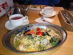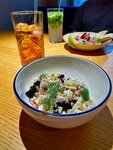 В целом заведение понравилось, хочется вернуться. Отмечала здесь день рождения. Вкусная еда, интересная подача, новые для нас блюда, хорошие порции. Приятная обстановка, интересный интерьер. В основном морская кухня. Обслуживание подпортило впечатление. Вазу для цветов принесли перед уходом, десерт, который заказали сразу, принесли перед вазой для цветов. Грязная посуда убиралась два раза, второй раз по нашей настойчивой просьбе. Чай, лимонады, соус к блюдам очень долго несли. Сметанник в меню с золотой фольгой, принесли без. После долгих выяснений оказалось, что фольга закончилась. Блюда в целом приносили намного позже, чем обещали, хотя во вторник вечером загруженность была небольшая.