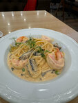 Очень порадовала и еда и качество обслуживания. Официант Эльмир-самый быстрый официант в мире 😄 И самый доброжелательный. Посмотрела вокруг- все ребята молодцы, никто не сидит без дела, протирают столы, следят за клиентами, убираются. Даже стажёры классные! Мне как предпринимателю приятно смотреть на сложенную команду! Вкусный морс и паста с креветками (принесли, кстати, через 5 минут 👍)