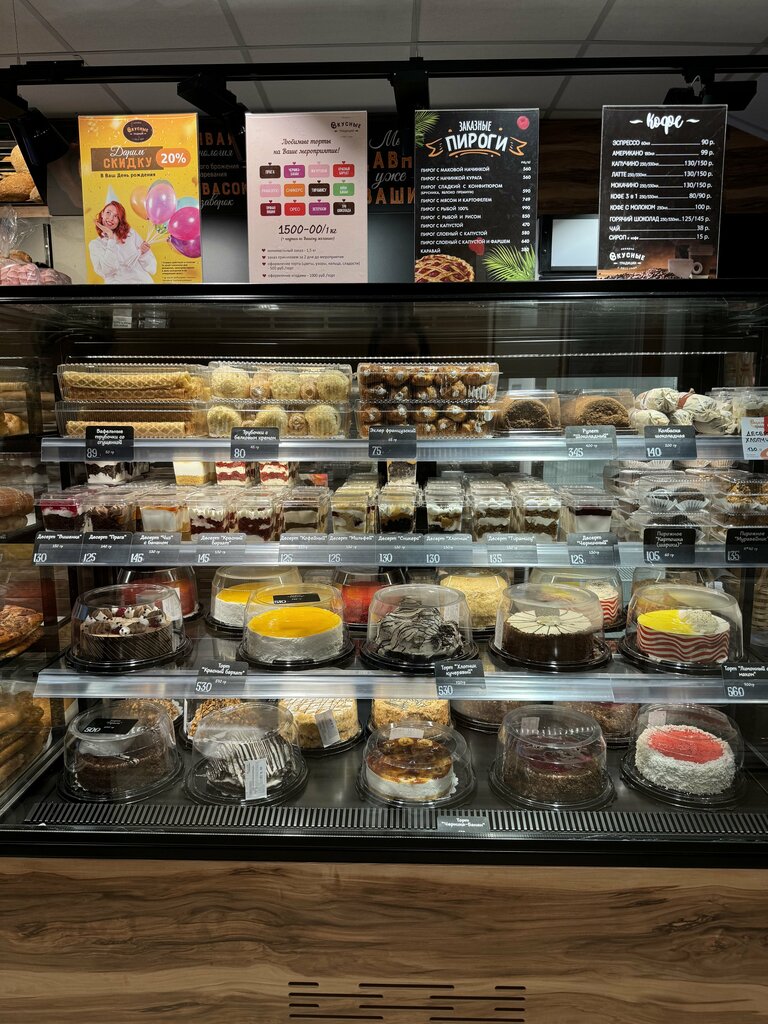 лет 5 назад там было в 3 раза вкуснее, сейчас выпечка и торты как-то на вкус испортились, возможно экономят. Поэтому сейчас там берём только три позиции: хлеб, вафли с молочной начинкой и пирожное порционные прага либо сникерс. Нооооо, цены конечно стали очень кусаться 😬😬😬