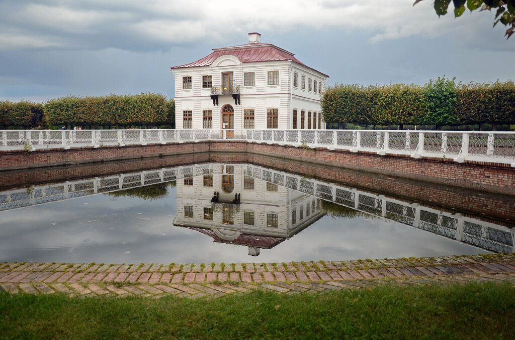 В зимнее время закрыт. Но снаружи также можно получить массу впечатлений! Красоту дворца подчеркивают пропорции и отделка, отражение в зеркльной глади, а не помпезность. Миниатюрный, притягивающий взгляд, павильон-дворец находится в западной части парка. Назван в память о посещении Петром I резиденции французских королей Марли ле Руа под Парижем. Архитектор Иоганн Фридрих Браунштейн.