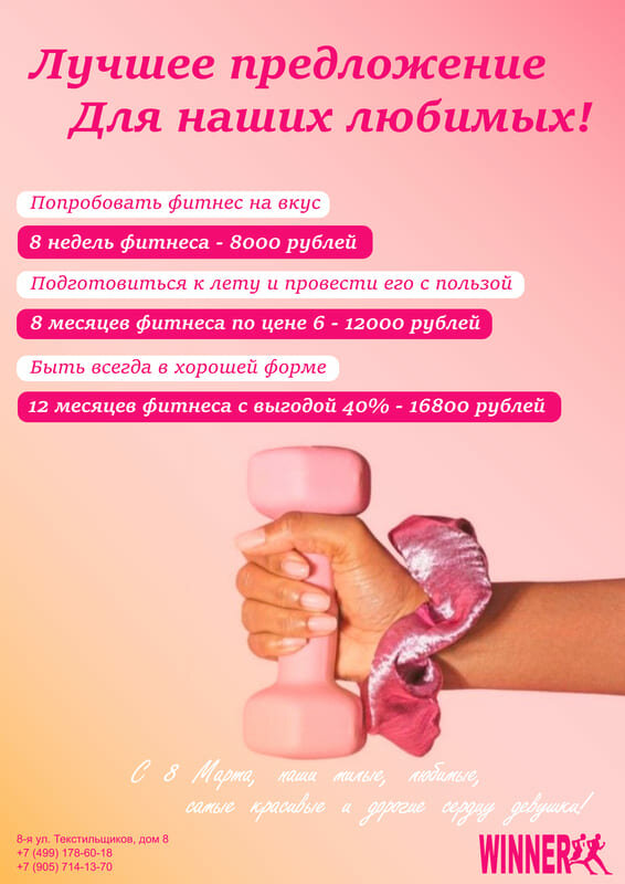 Лучшее предложение для девушек к 8 Марта! -40% на год фитнеса!