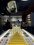 Новое необычное место со сладостями. Необычные конфеты, драже и пряники. Есть суфле типа птичьего молока. Мне понравились фисташковые и масала. Они не слишком сладкие. Есть чай и кофе на вынос. Внутри, к сожалению очень мало места - всего два столика, так что посидеть внутри может быть и не повезёт, поэтому берите с собой!