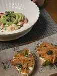 Салат с креветками, авокадо и острым соусом