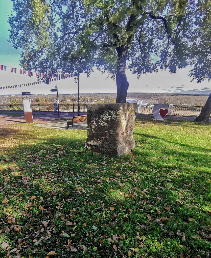 Это не фундаментый блок, как можно предположить, а последний сохранившийся советский парковый объект – шахматная доска. Всего таких осталось 2 штуки, вторая стоит рядом. Верхняя поверхность этого куба была расчерчена на клетки, играли стоя, а большие шахматные фигуры брали в пункте проката.