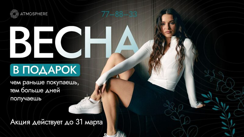 Отличный Фитнес - клуб во Владимире! Неслучайное название АТМОСФЕРА - с первого дня действительно погружаешься в атмосферу комфорта, удобства, чистоты и порядка. Здесь все продумано и обустроено до мелочей для фитнес тренировок. Просторные тренажерные залы, удобные раздевалки, классный чистый бассейн с прозрачной водой, джакузи, хамам. Здесь отличное оборудование, разнообразные групповые занятия, тренеры, готовые помочь во всем. 6 декабря 2025 г. клуб отметил свой 8-ми летний День Рождения! Это место, в которое хочется возвращаться! Здесь по- настоящему -АТМОСФЕРНО! Рекомендую!