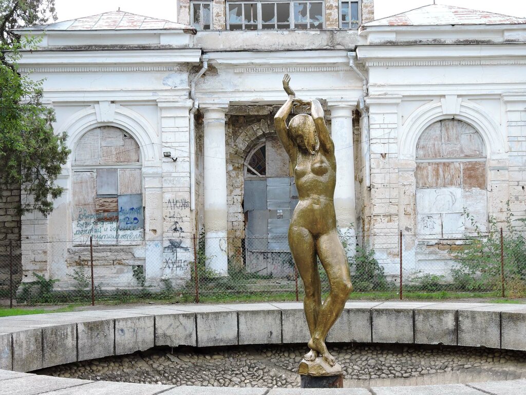 Красивая скульптура. К сожалению, остаётся только догадываться какая была здесь красота, когда всё функционировало. Сейчас - полная разруха