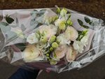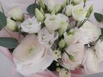 Купили букет с рунункулюсами и эустомами. Забрали самовывозом. На время перевозки букет закрыли сверху дополнительно, по моей просьбе. Объяснили, как ухаживать. Прикрепляю фото букета в день покупки и через 2 дня. Букет нежный и стильный. Всё оформлено со вкусом. И накануне 8 марта не подняли цену на букет. А ещё благодаря "Аура букет" я узнала о цветах ранункулюсах. Теперь это мои любимые цветы. Эустомы давно люблю.