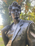 Август. Прогуливаясь по Екатерининскому парку, мы уже на выходе (заходили с Олимпийского проспекта), справа, обнаружили трогательны памятник «Офицерским жёнам». Логично и символично, ведь рядом находятся - театр Российской армии, Центральный дом Российской армии им.М.В. Фрунзе и музей Вооружённых сил. Сначала мама, а потом и я (пошла по её стопам)испытала нелёгкую долю жены офицера. Не понаслышке знаю все тяготы и лишения гарнизонной жизни с постоянными переездами (Казахстан, Одесса, ГДР) и радостно сегодня осознавать, что теперь есть такой памятник сотворённый в Студии военных художников им. М.Б. Грекова скульпторами А.И. Игнатовым и Д.В. Клавсуцем.