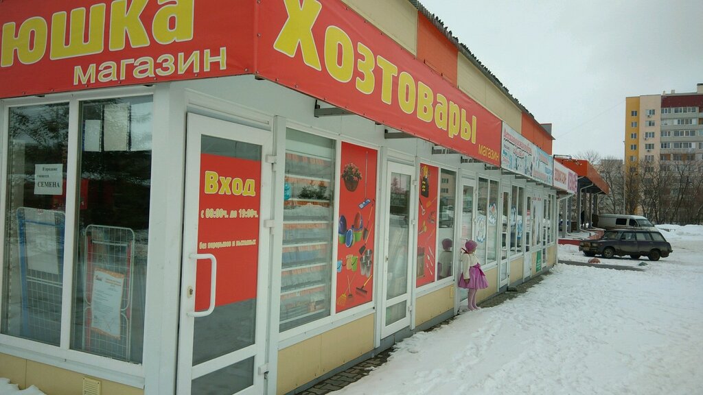Небольшой хоз.магазин рядом с домом. Простецкий инструмент, крепёж и материал есть в магазине, ассортимент не велик, да это и не спец магазин