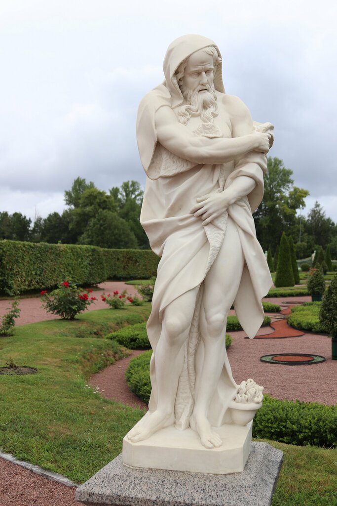 Четыре оригинальные статуи, составляющие цикл «Времена года» - работы итальянского скульптора Дж. А. Чибеи 1765–1767 гг. В 1767 г. их приобрел русский консул в Венеции маркиз П. Маруцци и доставил в Россию. Первоначально скульптуры стояли на балконе Михайловского замка, затем были перенесены в Таврический дворец. В середине XIX столетия статуи передали в Эрмитаж, где они находятся и по сей день. С 2007 г. петергофские копии находились у Церковных ворот Верхнего сада. Пьедесталы из серого гранита, декорированные восьмигранными филенками, стояли под вазами искусственного мрамора в Нижнем парке Ораниенбаума. В 2011 г. после реставрации Ораниенбаумской резиденции пьедесталы вместе со статуями установили в южной части Нижнего сада. Мраморные скульптуры «Весна» и «Лето» первой половины XVIII в. были установлены у центральной аллеи Нижнего сада предположительно в 1750-х гг. В 1926 г. перемещены в Петергоф, в 1928 г. установлены на партере петергофского Верхнего сада. В начале войны были укрыты в подземном тайнике. Статуя «Весна» была изъята из захоронения и установлена в центре нижнего бассейна каскада «Золотая гора», а статуя «Лето» - на Морской террасе Монплезира. В 2014 г. изготовили копии скульптур из искусственного мрамора, которые установили на исторических местах на центральной аллее Нижнего сада Ораниенбаума. Источник: В. Я. Юмангулов, Н. Ю. Хадеева «Скульптура Ораниенбаума», 2019 г. Большое спасибо реставраторам, что они дали нам возможность увидеть замысел мастеров XVIII века!
