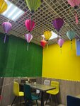 Яркое и милое местечко со своими посадочными местами. Если в тц столы заняты чаще всего подростками, здесь свободные столы всегда есть. Порции большие. Фо бо вкусный, на фото его нет. Том ям не плохой, маловато ингредиентов и под конец он стал сильно кислым. Порция риса больше, чем в других местах. Сотрудники вежливые и заказ не долго ждать. 👍