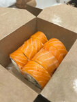 2 шт суши с лососем, 1 шт спайси гункан с лососем, Ролл с лососем, Филадельфия. Порция (19 шт) 590 гр