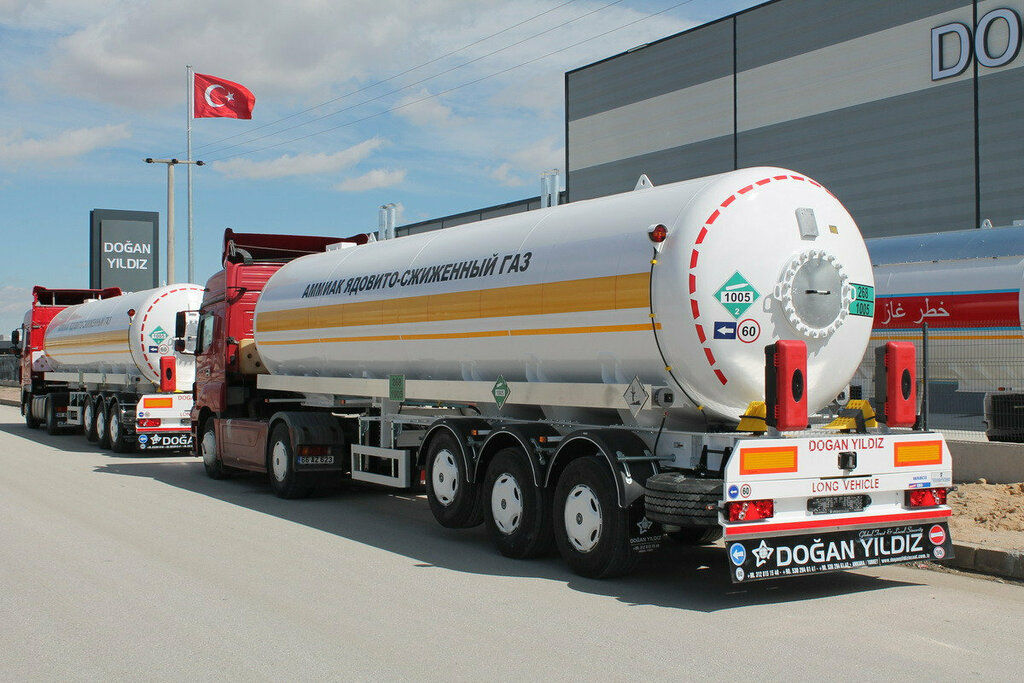 Новый турецкий аммиаковоз. Облегченная конструкция, на 4 осях. Предоставляется максимальный покет документов для регистрации аммиаковоза в РосТехНадзоре. Полуприцеп выполнен и испытан с учетом всех российских требований