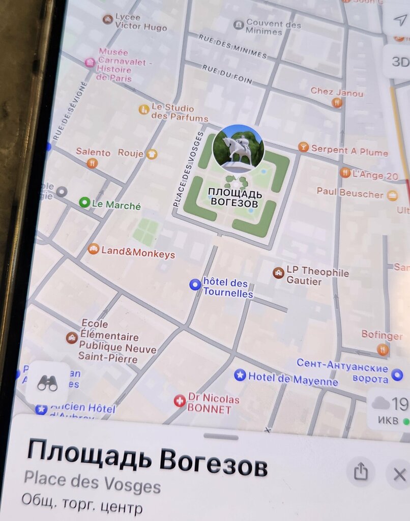 An ancient historical square in Paris in the Marais quarter, in the center of which stands a sculpture of Louis on horseback. King Henry II died in this square during a jousting tournament. Cardinal Richelieu and the writer Victor Hugo once lived in this square. Now it's just a park for walking.