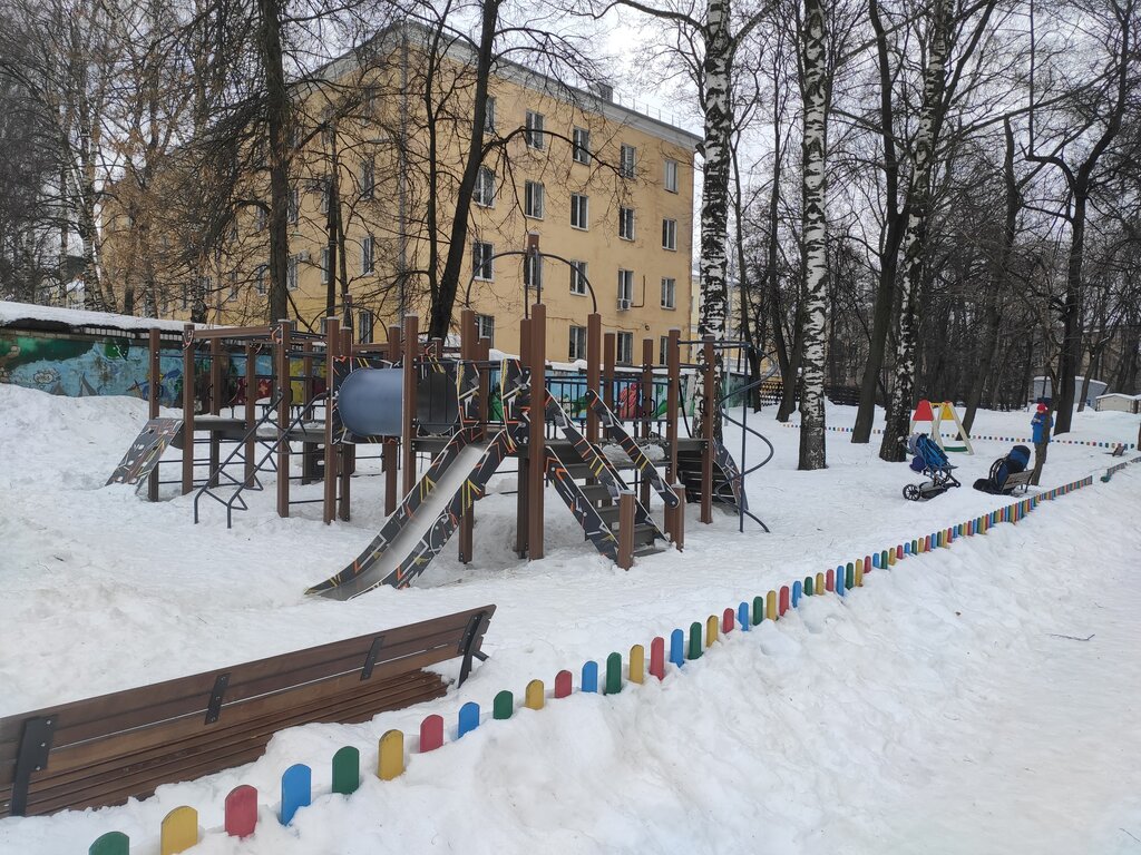 Удобная детская площадка. Покрытие мягкое. Много сооружений для разных возрастов и лавочек для родителей. Тенек, солнце не напекает. Ребенку нравится сюда приходить и мне тоже