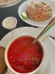 It's a wonderful place. All staff is Russian-speaking. The menu is full of our favorite dishes: borscht, dumplings, pilaf, various side dishes, shawarma, awesome compote. My child doesn't drink like this at home, but here I ate everything and Bobma's compote. The portions are huge and delicious. Prices are reasonable: borscht-20dx, pilaf-40dx, compote -35dx. His delivery is free of charge.
