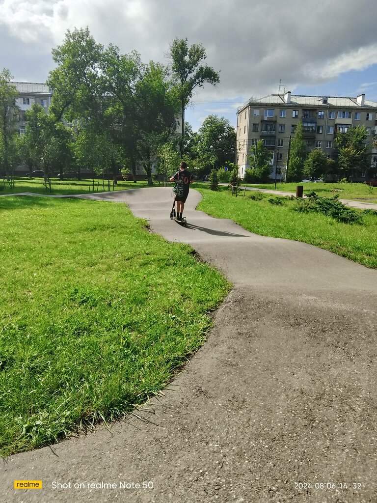 С треком справляется двухлетний ребёнок. В тёплое время года здесь собирается пол района. Для полного счастья можно было бы детскую площадку организовать. В ближайших дворах таковых нет.