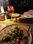 We were celebrating our wedding anniversary. I liked the atmosphere . Kitchen...Well, so-so. Tom- yam is about nothing, there is no hint of sharpness; slightly acidic, strongly salty. Pork steak- with streaks that do not chew at all. From the menu of the section " Hands of the Caucasus " - eggplant salad is too sweet - I do not recommend it. Beef steak with mushroom sauce and mashed potatoes is delicious, high-calorie, additions in the form of salad and other dishes are not required, it is enough to saturate. We took cocktails - they were delicious, there was a lot of ice)