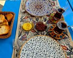 I chose this "restaurant" (said loudly) I liked the price menu at home, I don't know where I looked in my life, I didn't like it, the guys were helpful, of course, and the complement was a little rice, half potatoes and seagulls, we asked for a complement when ordering, and so we ordered shrimp 700 lira and meat like roast and the famous lentil soup 250 lira, then somewhere I've seen it for 125. In total, the portions are small, the meat is too salty, someone fell in love) the soup is not fully understood at all, but the bread is delicious to it, the atmosphere of the cafe, Sochi before the Olympics, the check is 1700 lira, according to our 3400 today. I don't want to do this a second time.