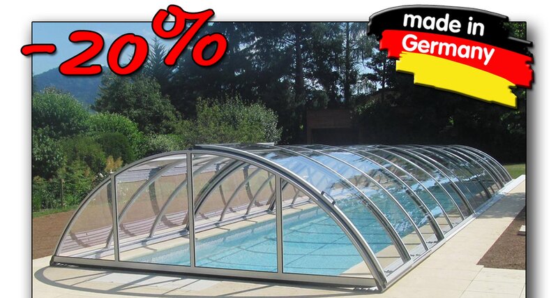 Павильон для бассейна «Теледом» производства завода Voeroka Германия — конструкция защищает бассейн от мусора и осадков, сохраняет тепло воды.