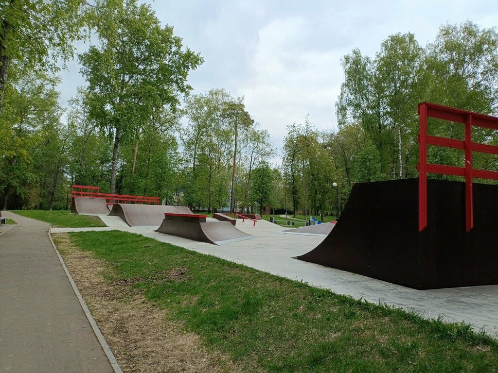 Отличный скейт парк. Небольшой локальный, этот парк больше для отдыха, спокойного катания, тихо, людей мало, фигуры грамотно разработаны. Из всех ближайших парков - этот самый для меня приятный