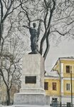 Этот памятник установлен здесь в 1923 году в рамках плана Ленина по проведению пропаганды среди населения. Все дело в том, что вождь хотел сделать искусство, в том числе и памятники, средством для распространения коммунистической идеологии. Источник: https://www.kirov.kp.ru/daily/26452/3322509/ Три звезды и только за искусство, выбор персоналии на совести политиков.