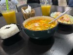 4/5 Вкусно/Сытно/Просто Отличный том ям, не слишком густой не слишком жидкий вот как надо прям) Порадовали свежевыжатые шейки. Атмосфера и персонал хромает немного, но учитывая то что это встроенное заведение сложно ожидать чего то прям вау. Чек вышел на 1,1 заведением остался доволен, будете проходить мимо не постесняйтесь зайти)