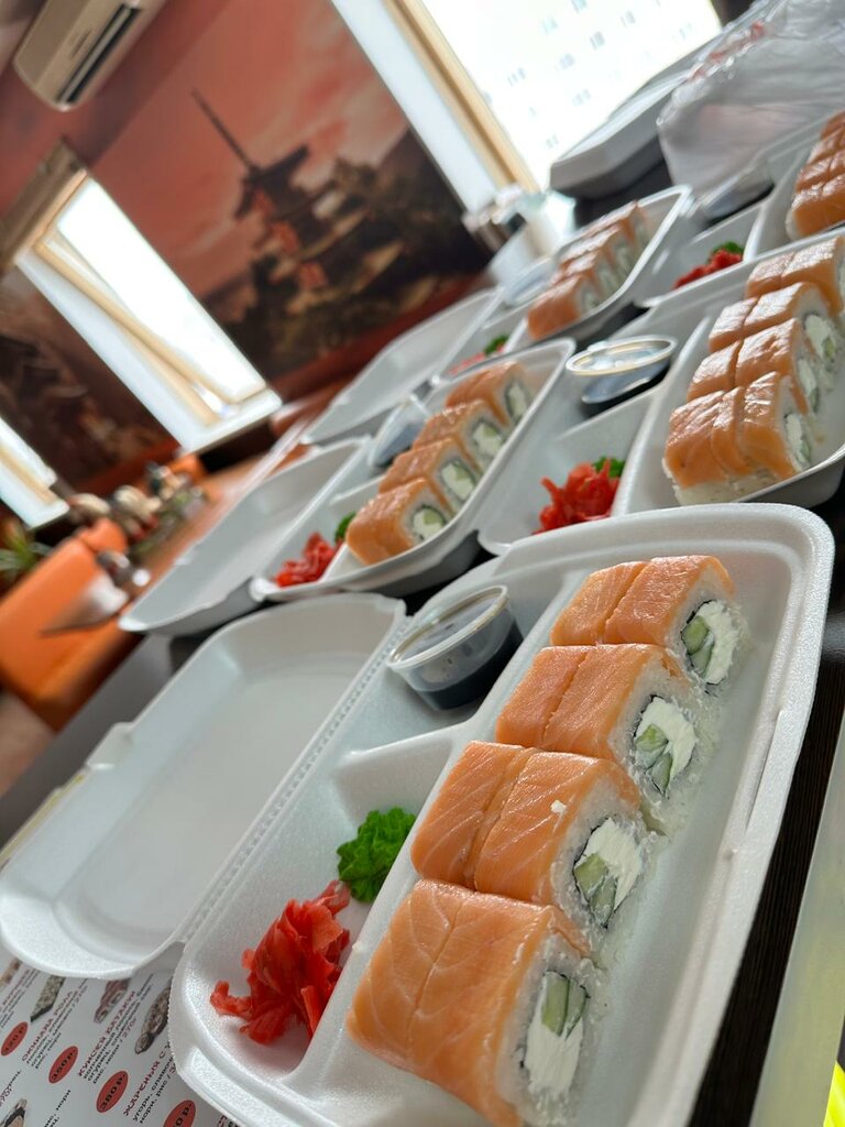 Роллы и 🍣 суши на вкус неплохи, не разваливаются, не маленькие. Рис в роллах нравится. Оплата наличными . Жаль, что - только на вынос! Время исполнения заказа было в пределах часа, в зависимости от кол-ва заказов. Будем заказывать ещё.