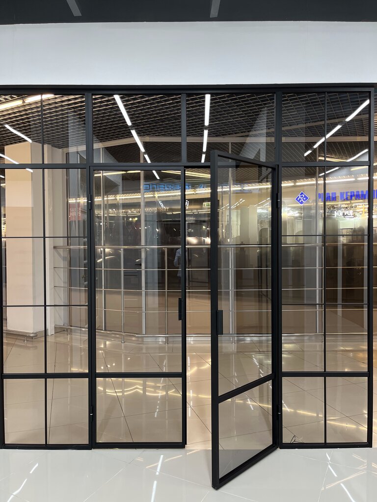 Лофт перегородка из алюминиевого профиля высокого качества. Порошковая покраска в любой цвет по каталогу RAL. Раздвижные системы, распашные двери, каскадные перегородки.