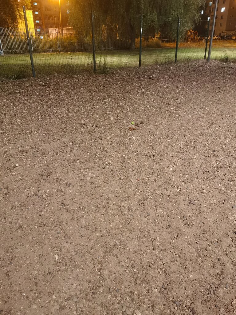 Огороженая территория, без всяких игрушек и снарядов. Каменистое покрытие. За собаками не убирают, всё в экскрементах. Ужас