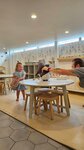 Прекрасное кафе для семей с детьми. Приятно, что продуманы разные мелочи: силиконовые уголки на столах, сменная обувь, памперсы, салфетки, пеленальный столик в уборных, даже детский стульчак для унитаза. Все эти «мелочи» совсем не мелочи, а внимание к вашим детям и облегчение досуга для родителей. Персонал вежлив, улыбчив, внимателен. А какая игровая зона! Это просто рай для малышей! Двухэтажный комплекс, где есть детская кухня, сухой бассейн, море игрушек, каждый ребенок найдет занятие по душе. Отдельно хочется отметить эстетику дизайна. Продуманность и красота во всех мелочах–от игрушек в пастельных тонах, интерьера, посуды до стильного мерча. Из минусов–не все позиции из меню вкусные. Мы были несколько раз в кафе и например пиццы не очень понравились, бургеры тоже. Зато детское меню замечательное, вкусные алкогольные коктейли, брускетты, десерты. Кафе рекомендую!