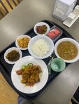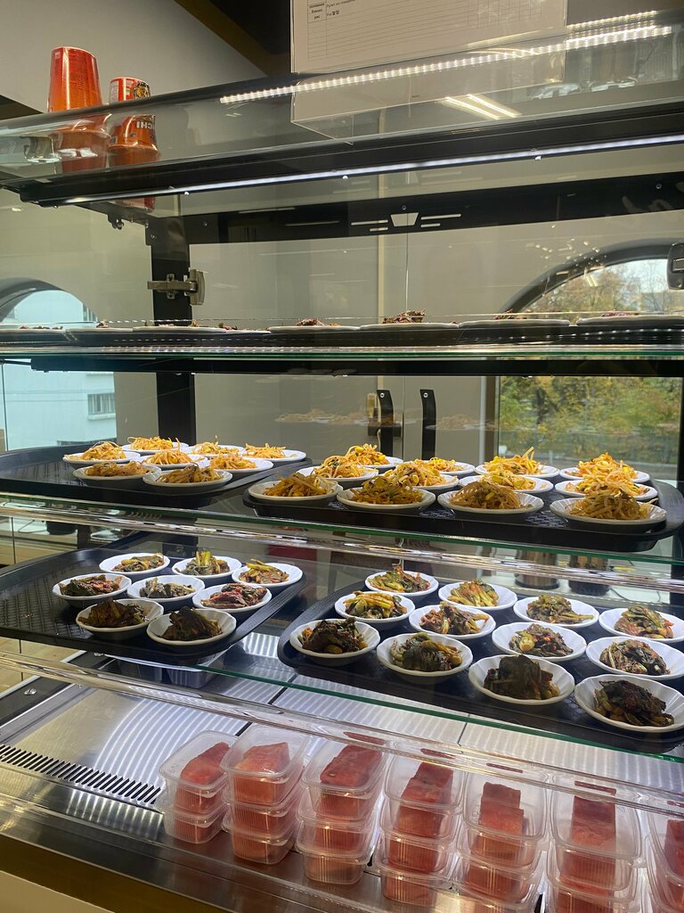 Пришла из-за того что здесь есть столовая Самсунга с корейской едой) в общем приятно удивлена, был суп, мясо жареное, три острые закуски, рис, чай и арбуз и всё за 800р (что в принципе даже норм) Не зашел только суп, но это просто по личному предпочтению Персонал довольно приветливый)