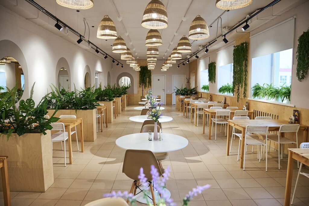 Красивый интерьер, чистый туалет с освежителем воздуха, большой зал, удобные столики, меню не видела к сожалению, приходили с детьми быстро быстро взяли на 4чел - 2бизнес ланча + второе + салат вышло около 800₽ вполне себе не дорого. Попали на обеденное время, еда полухододная , очередь человек 5-6 , греть не предлагали даже. Котлета куриная вкусная, вся еда недосоленая (лучше чем пересол, но я недосаливаю на столе поэтому ела так ), салаты не особо понравились, по вкусу понравилась только котлета и компот. 😁 суп солянка не особо, суп пюре из овощей тоже не особо)) на вкус и цвет, обычно едим в другой столовой там еда нравится больше. Но все же загляну еще раз, не в обеденное время и в спокойном темпе )) попробую другие блюда