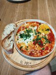 Кофейня "El pan" г.Геленджик ул. Революционная улица, 11 Заказали: 1. Шакшука+сыр 2. Шакшука 3. Омлет с рыбой и авакадо+сыр 4. Капучино на альтернативном молоке 5. Капучино на обычном молоке 6. Мохито ИТОГО:2950 р. По еде: 1. Шакшука+сыр -жирно, но вкусно, помидоры хорошие, в принципе близко к классическому рецепту. Порция достаточная, сытно и вкусно. 2. Шакшука - аналогичная, за вычетом сыра. 3. Омлет с рыбой+сыр - вкус омлета хороший, рыба малосолёная, нарезана кубиками, вкус хорошие видимо свежая. Авокадо спелый. Вкусно и сытно 4. Капучино на альтернативном молоке - хорошее альтернативное молоко, кофе с горчинкой. 5. Капучино на обычном молоке - с рисунком замариваться не стали, не получилось, ну и ладно... Вкус с небольшой горчинкой, приятной горчинкой. Понравился. 6. Мохито - любитель мохито сын, ему понравилось. Облуживание: - Персонал хороший, довольно таки быстрый - Кофе приготовили быстро - Блюда принесли в течении 15 минут - Уборка посуды быстрая - Развод с добавками в блюдо, значительно увеличивают стоимость заказа. - Сравнительно высокие цены Резюме: Хорошая еда, хорошее обслуживание. Довольно, таки высокая цена. Можно сходить