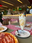 Увидели в парке кафе «Меркалето» и решили зайти (у меня остались хорошие впечатления после посещения этой сети, но в саду им. Баумана). Очень приятный интерьер, уже знакомые фирменные красно-зеленые цвета, быстрое обслуживание (несмотря на свадьбу на первом этаже), меню с доступными ценами и хорошим выбором детских позиций, даже игровая зона есть 👍 Отдельно отмечу пиццу на тонком тесте и молочные коктейли, которые просто отпад (не приторно сладкие). Из детского меню понравилась котлетка с пюре, на десерт мне понравилось брауни с мороженым, но его заказал муж и не дал много съесть🥲 ✍Когда мы пришли, успели занять столик, но в выходные ажиотаж, поэтому, наверное, лучше бронировать заранее.
