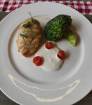 соус из сыра робиола, моцарелла, подкопченная куриная грудка, горгонзола